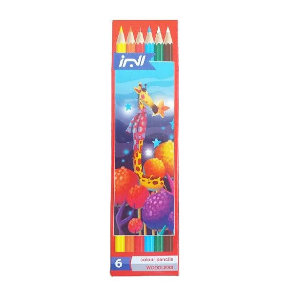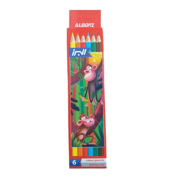 مداد رنگی 6 رنگ البرز جعبه مقوایی مدل WOODLESS