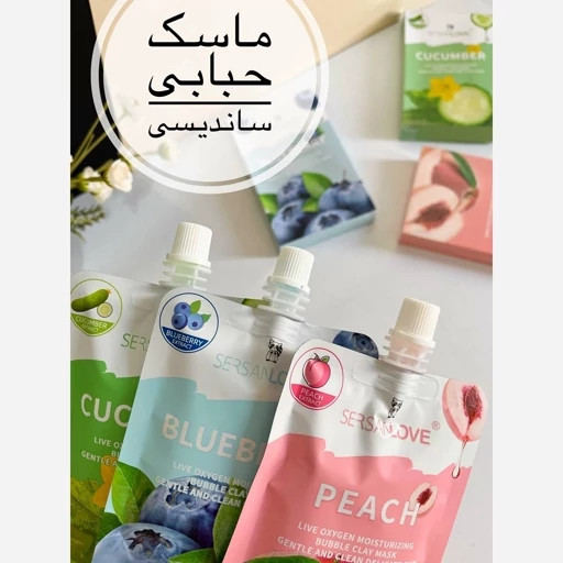 ماسک حبابی خاک رس و هلو و بلوبری و خیاری